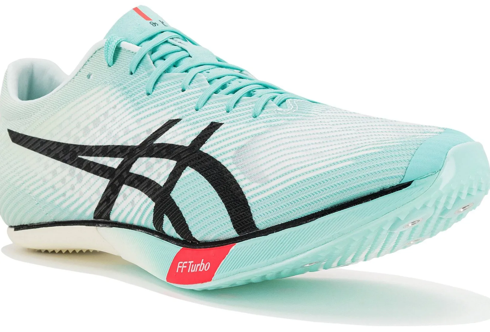 - Semelle extérieure : Équipée de 7 pointes et d’un insert en peau de requin au talon, la semelle extérieure promet une adhérence parfaite sur la piste. Son accroche vous fait gagner en efficacité.