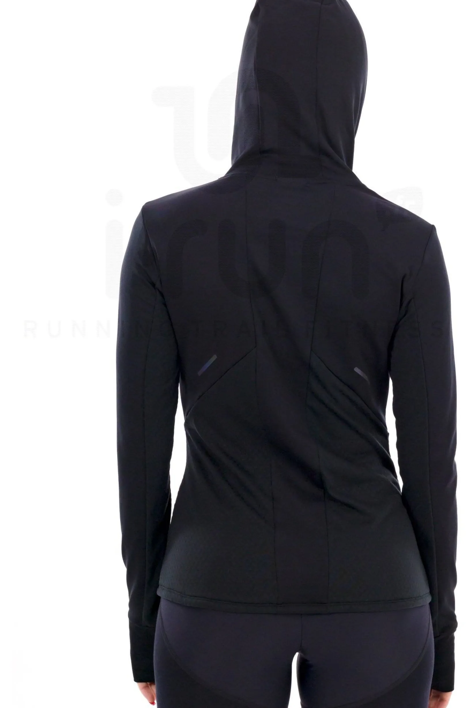 Doté d’une capuche, il garde votre tête à l’abri des intempéries si besoin. Ses passes-pouces isolent efficacement vos mains du froid.