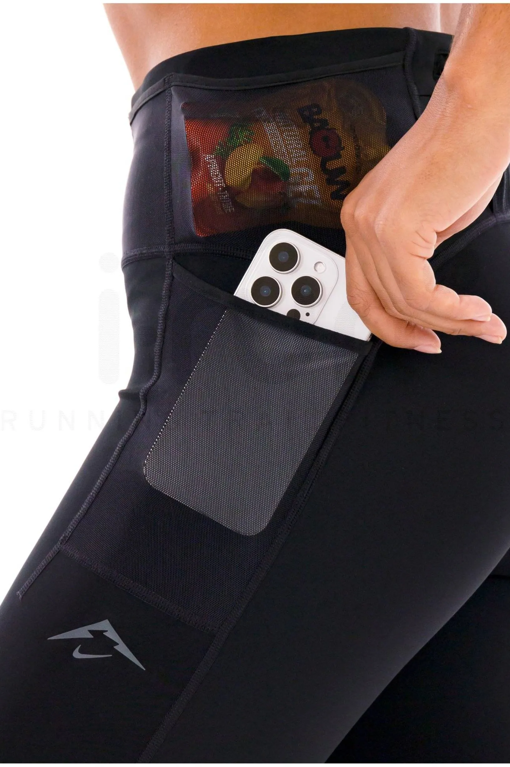 Modèle de praticité, ce collant dispose de deux poches latérales et d’une poche zippée au dos qui peut accueillir la plupart des smartphones.