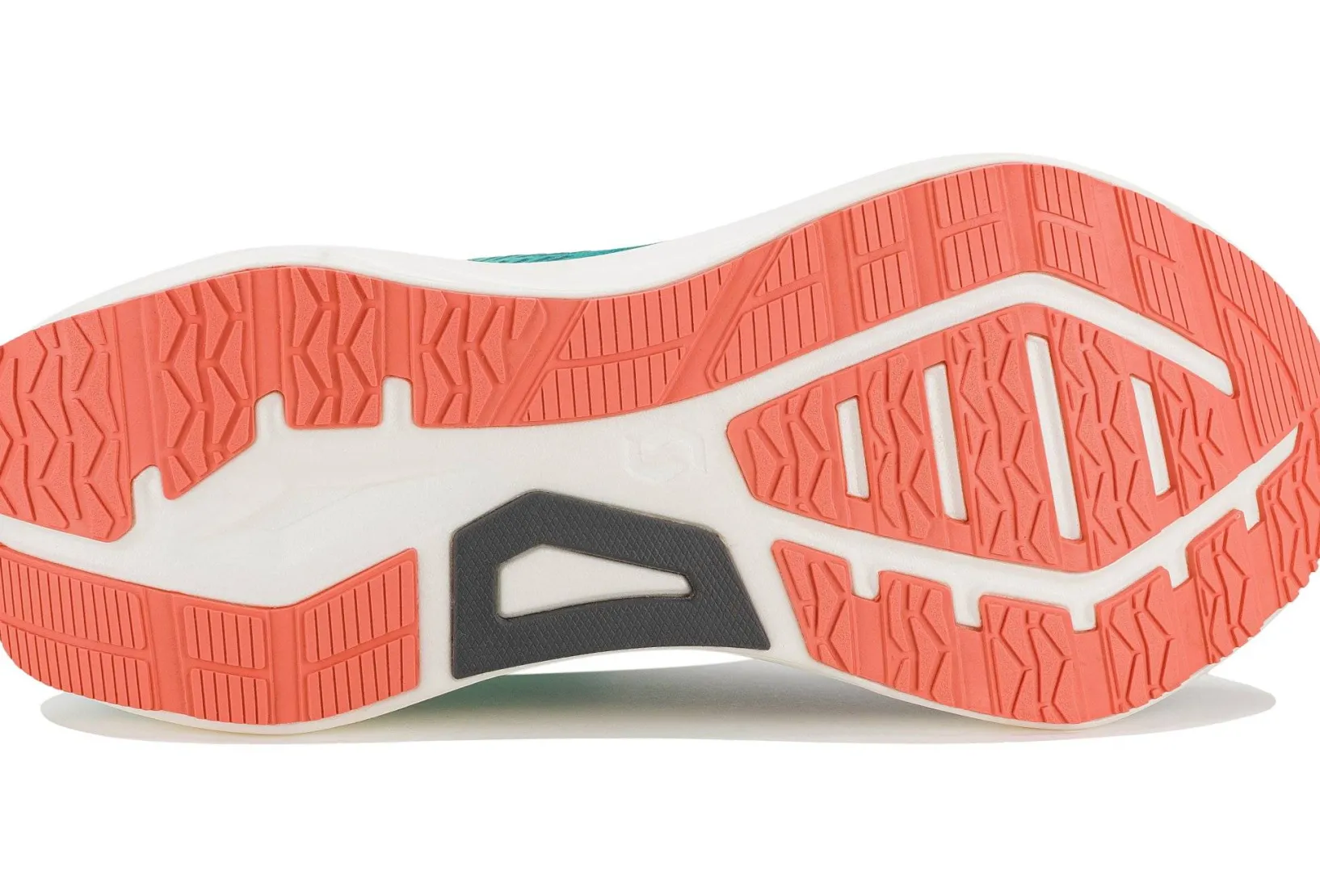 La semelle extérieure présente une grande surface de contact avec le sol pour une traction optimale, même dans des conditions humides. Conçue pour améliorer l’efficacité de la course sur route et sur surfaces dures.