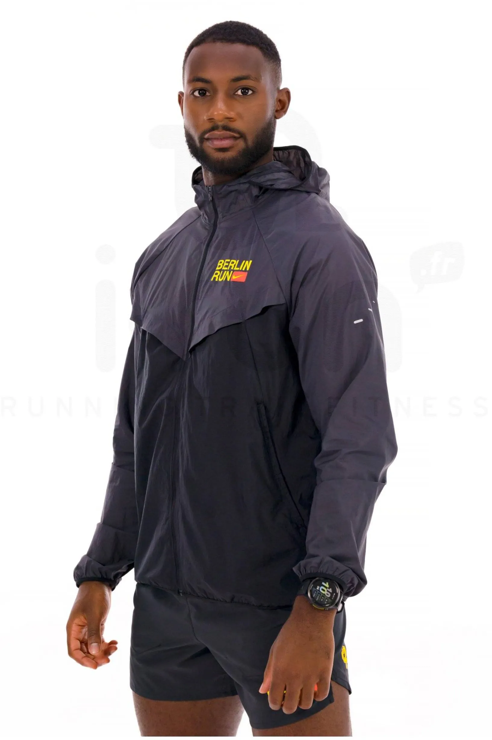 La veste homme Nike Stride vous permet de profiter pleinement de vos sessions de running même dans des conditions climatiques incertaines.