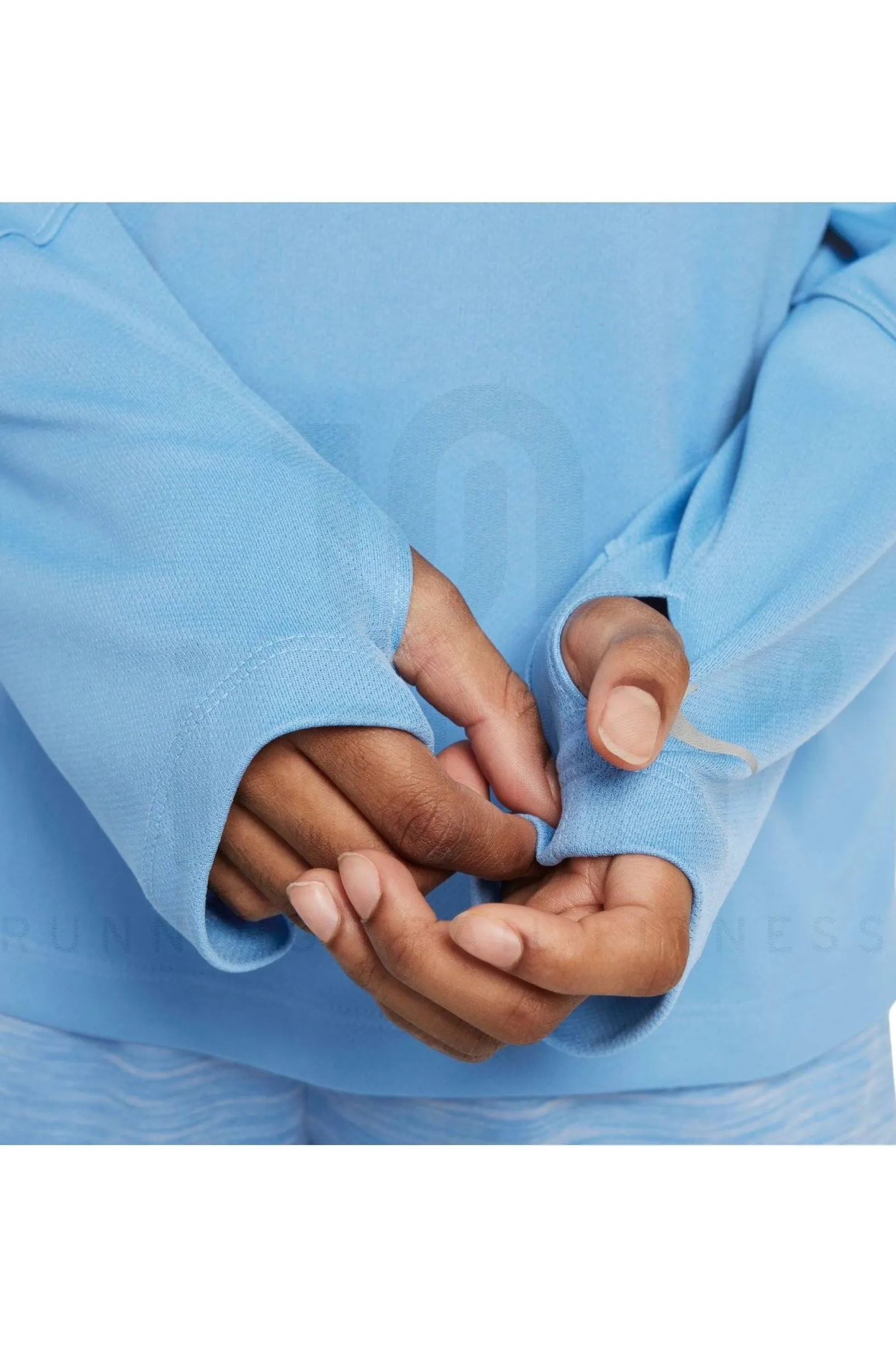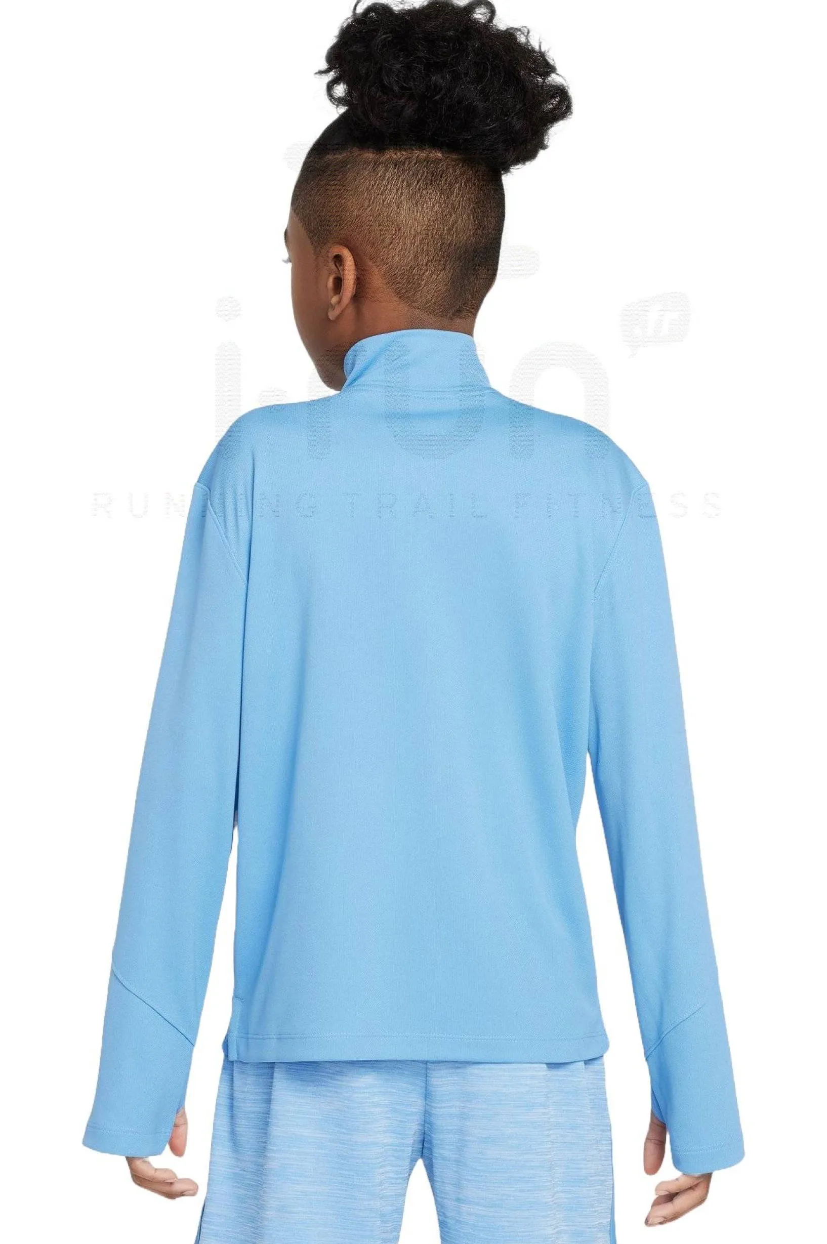 Un demi-zip est présent afin de moduler la quantité d’aération perçue pendant l’effort. Les passes-pouces veillent à une tenue parfaite.