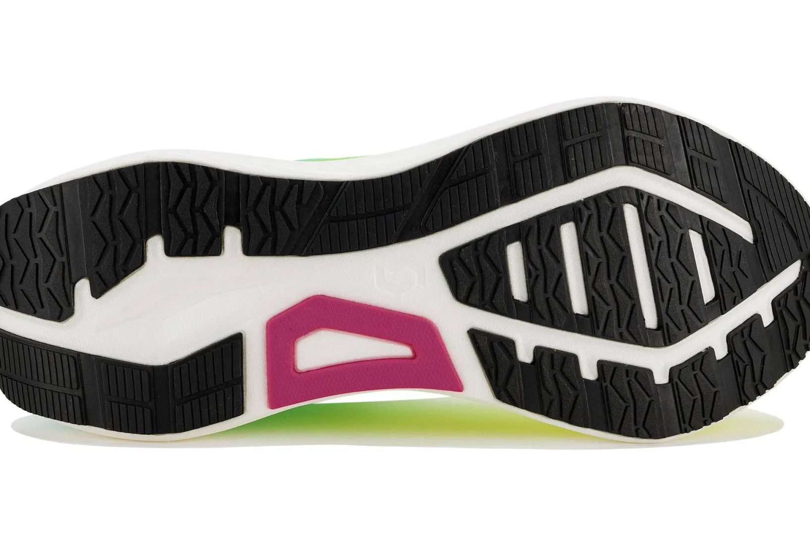 La semelle extérieure présente une grande surface de contact avec le sol pour une traction optimale, même dans des conditions humides. Conçue pour améliorer l’efficacité de la course sur route et sur surfaces dures.