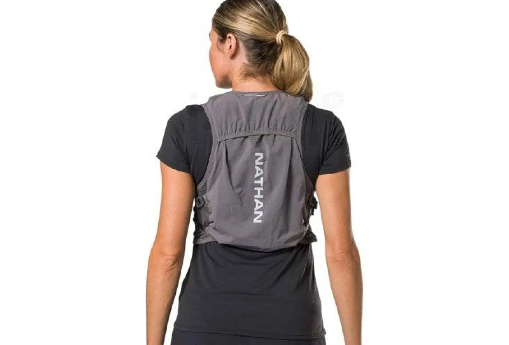 Pour une hydratation facilitée, elle s’équipe de deux flasques Hydrapack de 500 mL qui assurent un apport en eau constant, sans déséquilibrer votre course.