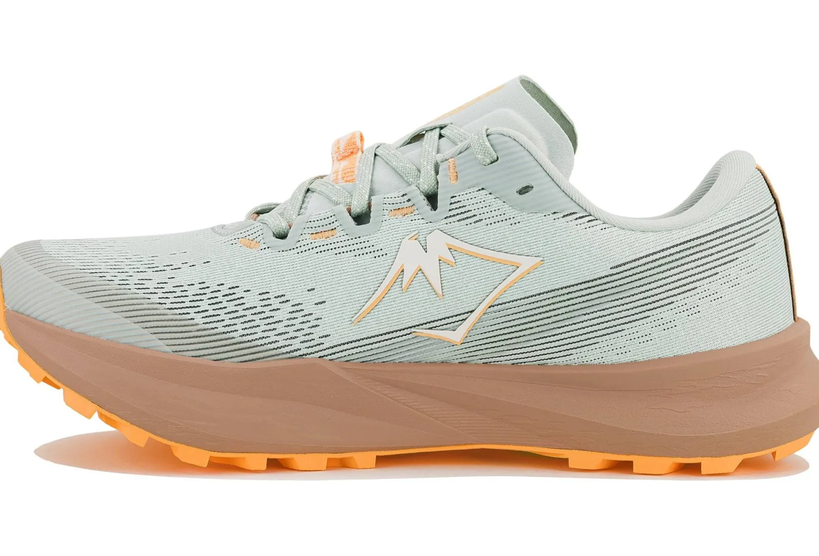 - Empeigne (partie supérieure qui enveloppe votre pied) : le mesh multi-directionnel vous assure un maintien supérieur dans les zones sensibles du pied pour évoluer sereinement sur les chemins rocailleux. Respirant et léger, il vous offre une bonne circulation de l’air lors de vos efforts.