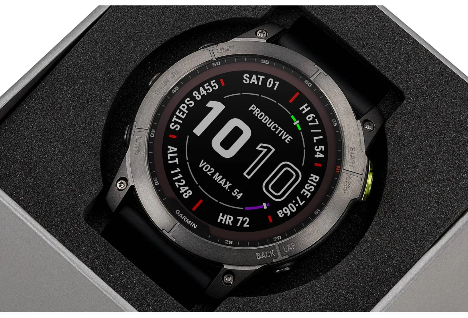 Votre santé est scrutée avec attention via un suivi de la variabilité de votre fréquence cardiaque. Elle combine notamment les données liées à la VO2 max, le score de stress et au procédé Body Battery. Le capteur Pulse Ox détermine le taux d’absorption d’oxygène.