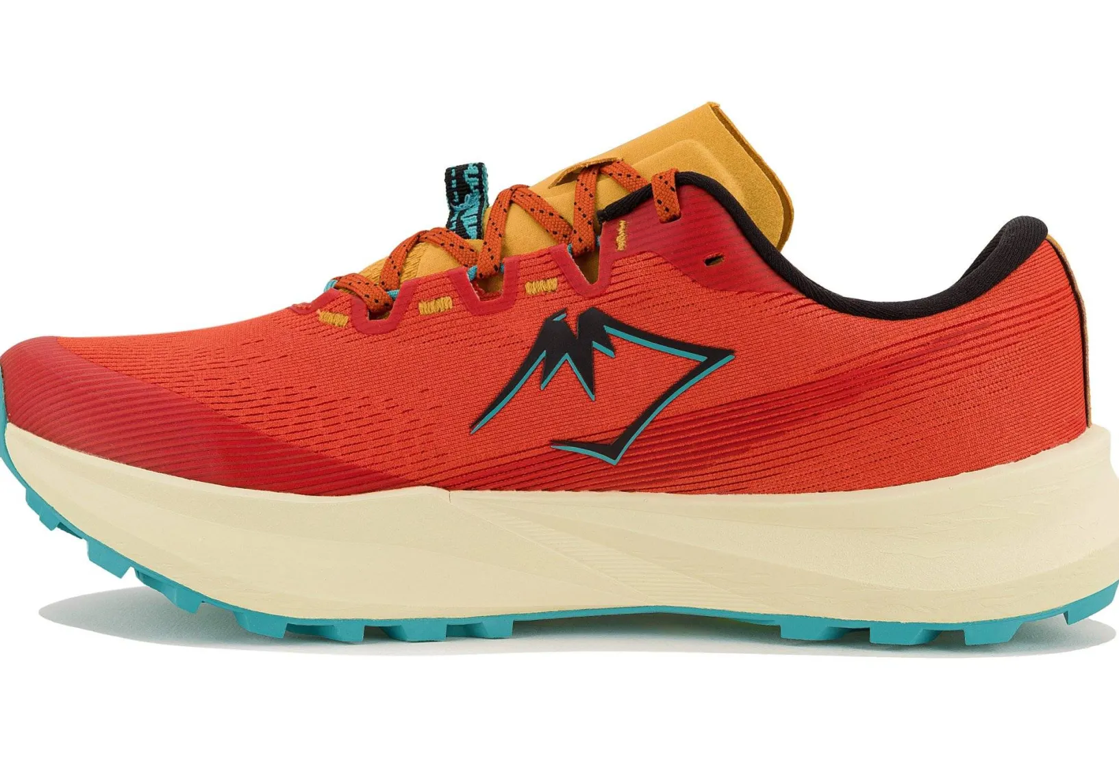 - Empeigne (partie supérieure qui enveloppe votre pied) : le mesh multi-directionnel vous assure un maintien supérieur dans les zones sensibles du pied pour évoluer sereinement sur les chemins rocailleux. Respirant et léger, il vous offre une bonne circulation de l’air lors de vos efforts.
