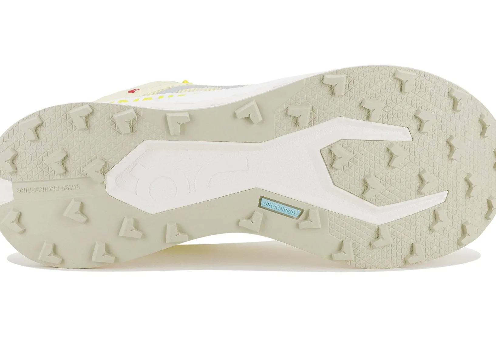 - La semelle extérieure Missiongrip combine des motifs d’adhérence multiples pour garder le contrôle dans des conditions météos changeantes.